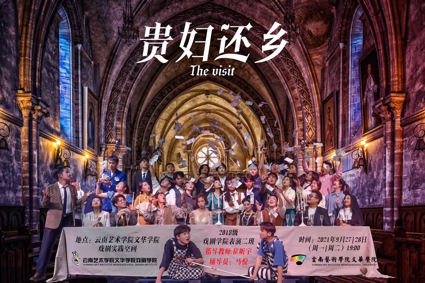 2021年9月27日、28日19时晚,在云南艺术学院文华学院戏剧实践空间上演了一出好戏,由崔昕宇老师执排,2018级表演二班35位演员演绎的迪伦马特经典剧作话剧《贵妇还乡》取得圆满成功。