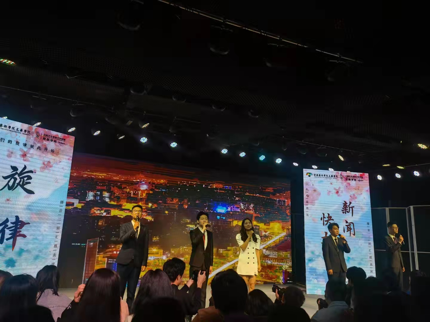 2021年10月18日19:00,云南艺术学院文华学院2018级播音与主持艺术专业三班在专业教师赵冠任老师的指导下,在戏剧实践空间进行了以《旋律》为主题的毕业汇报,云南艺术学院文华学院校长潘虹教授、文华学院戏剧学院院长王轶文等领导及老师莅临现场观摩指导。