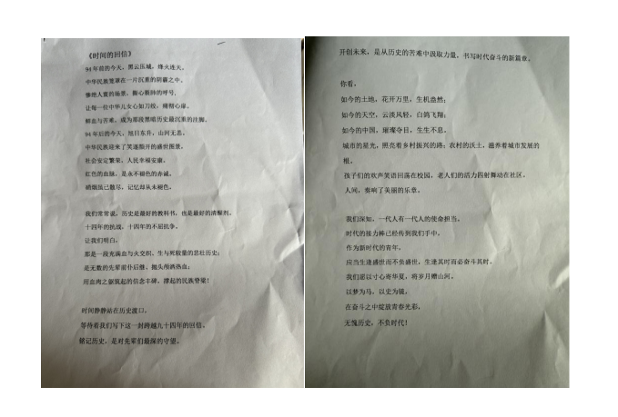 一等奖作品《时间的回信》(24级播音3班张宇诺)