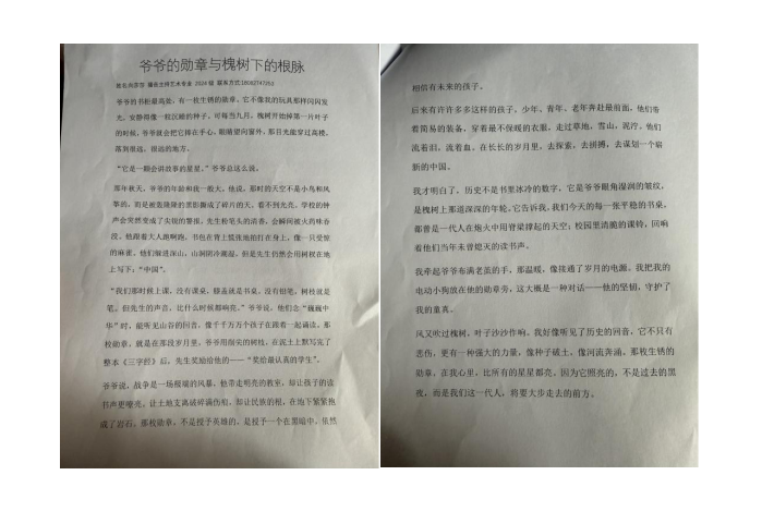 一等奖作品《爷爷的勋章与槐树下的根脉》(24级播音2班向莎莎)