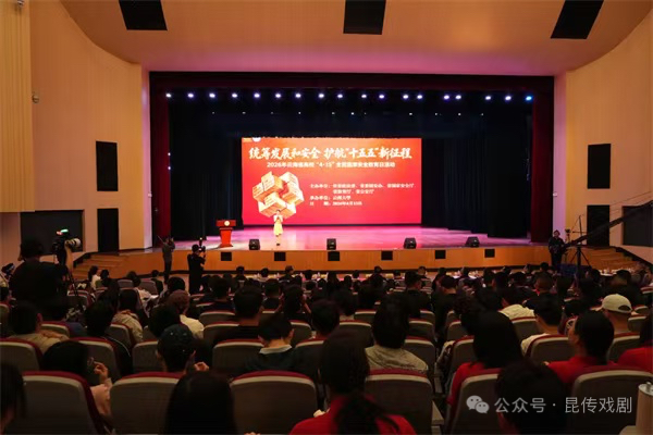 戏剧学院80名师生赴现场参与学习交流。在播音专业负责人周璟珏指导下,戏剧学院播音与主持艺术专业符栩欣、张骞舒、陈雨彤、蔡欣祺四位同学组成学校国安宣讲团,作为全省优秀高校宣讲代表登台展演,与云南大学、云南财经大学、云南警官学院等高校团队同台展示,充分展现了昆传学子积极向上、担当有为的青春风采与专业素养。